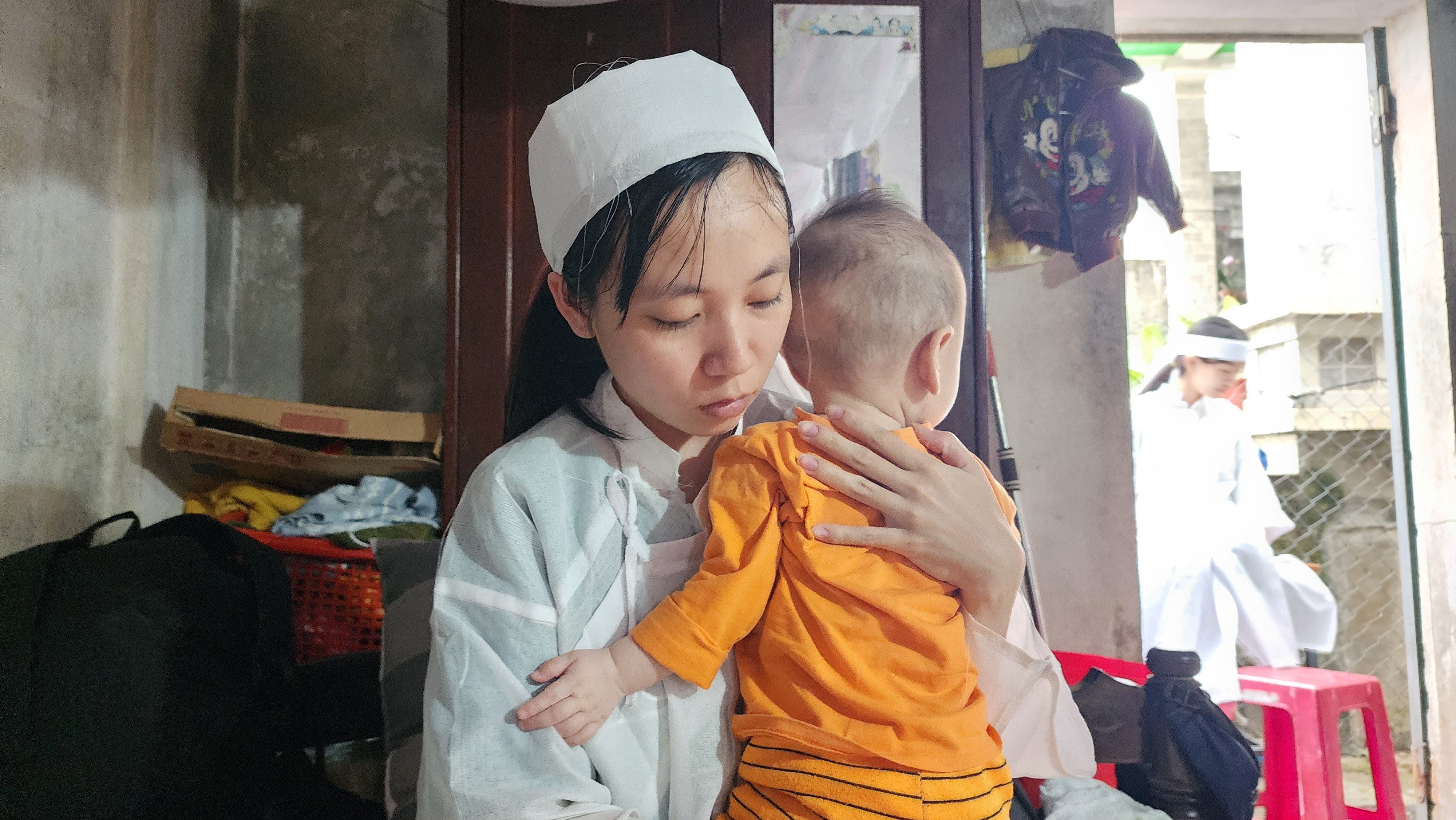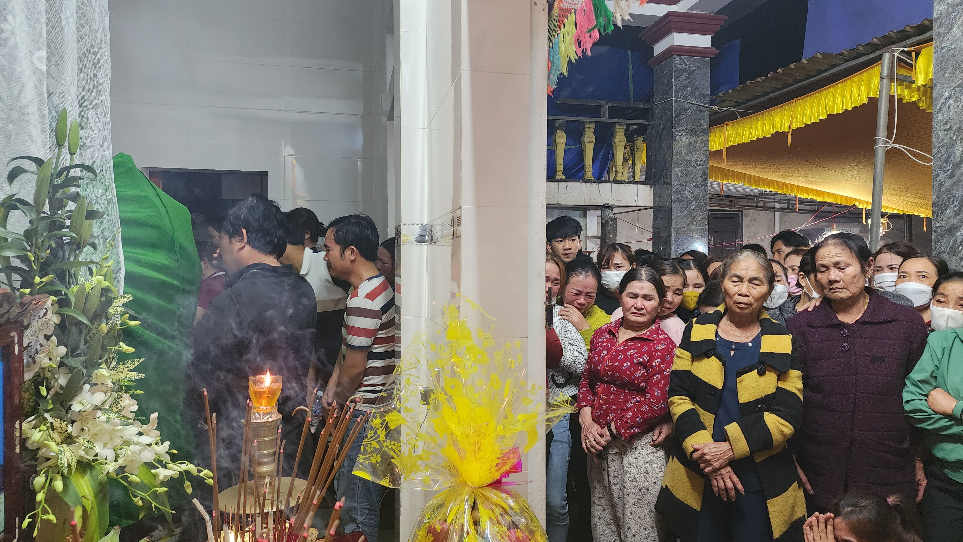 Bên trong căn nhà nhỏ cũ kỹ, hai cỗ quan tài nằm sát cạnh nhau lạnh lẽo. Khói hương nghi ngút càng làm không khí thêm phần ảm đạm. Gương mặt thất thần, em Nguyễn Văn Tuyến (SN 2001), con trai ông bà chia sẻ, hàng chục năm nay, cha mẹ em là ngư dân, sống nhờ vào nghề chài lưới trên sông để nuôi con.