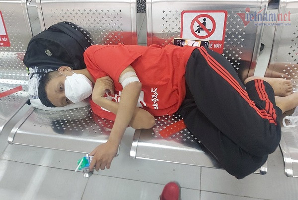 Lê Nguyễn Quốc Vinh mệt mỏi sau ca chạy thận. Con ăn tạm chiếc bánh bao và uống hộp sữa do một nhà hảo tâm tặng từ buổi sáng, rồi nằm thừ trên chiếc ghế sắt ngoài hành lang bệnh viện. Cậu bé chưa từng than thở, nhưng anh Lâm, cha của con đã quá hiểu nên cũng im lặng ngồi chờ.