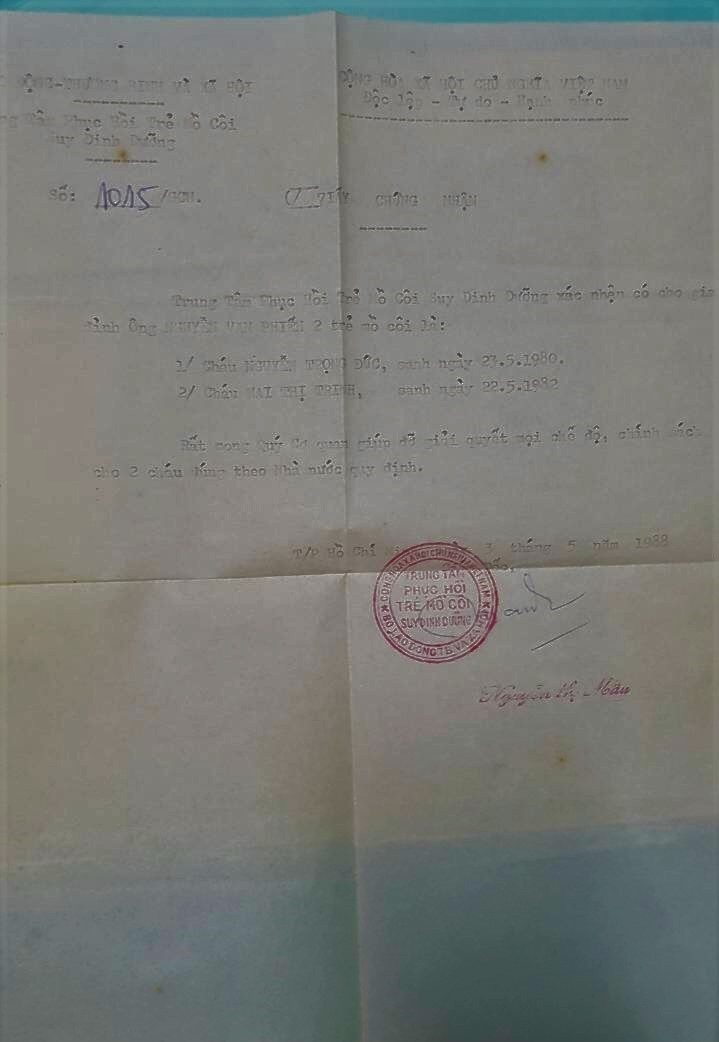 Anh Đức sau đó đã làm xét nghiệm ADN và xác định mình và người em không cùng huyết thống. Thông qua những giấy tờ nhận nuôi ông Phiến giữ lại, anh Đức biết được mình sinh ngày 23/5/1980, nặng 3,2kg. Chị Mai Thị Trinh sinh ngày 22/5/1982, nặng 2,46kg.