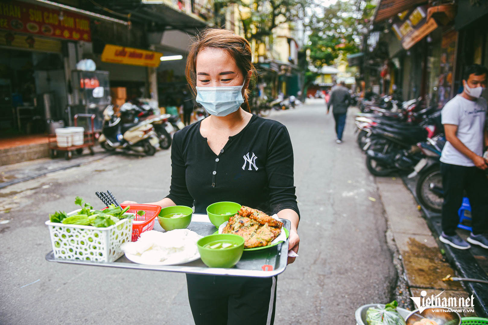 Là con gái của bà Nguyễn Thị Nhâm - người mở quán rươi này, chị Bùi Thị Nga vừa thoăn thoắt chiên chả rươi vừa kể: “Tầm 11-12 giờ trưa hay 17 giờ chiều, mẹ con tôi thêm người phục vụ nữa làm không ngơi tay vẫn chẳng kịp giao hàng cho khách. Trước đây khi chưa có Covid-19, chuyện mọi người dựng xe kín cửa, tràn sang cả nhà khác là chẳng hiếm. Ai cũng muốn nhanh nhưng thứ chả này lại cầu kì, lích kích lắm”.