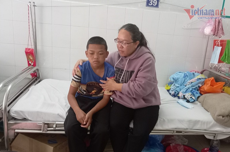 Ngước đôi mắt nhìn con trai qua cặp kính dày cộp, chị buồn bã: “Tôi cũng không biết có thể cho con chữa được đến đâu. Nếu không thể vay mượn ai nữa thì có lẽ phải đưa con về thôi”.