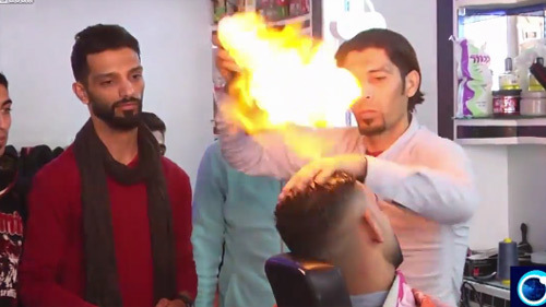 Một thợ cắt tóc người Palestine sử dụng lửa để tạo ra một phong cách chăm sóc tóc chưa từng thấy.