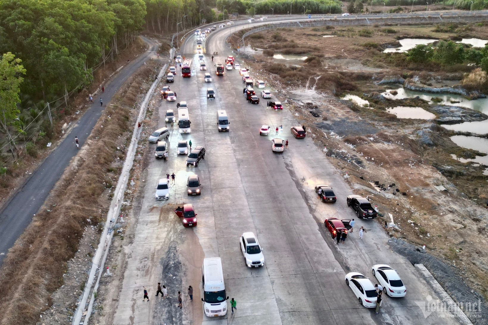 Ghi nhận của VietNamNet, chiều cùng ngày, trên cao tốc Phan Thiết - Dầu Giây tại nút giao với quốc lộ 1 đoạn qua huyện Xuân Lộc (Đồng Nai) lực lượng quản lý đường cao tốc đã phải chặn lối vào cao tốc để giảm ùn tắc trên cao tốc này về hướng TP.HCM.