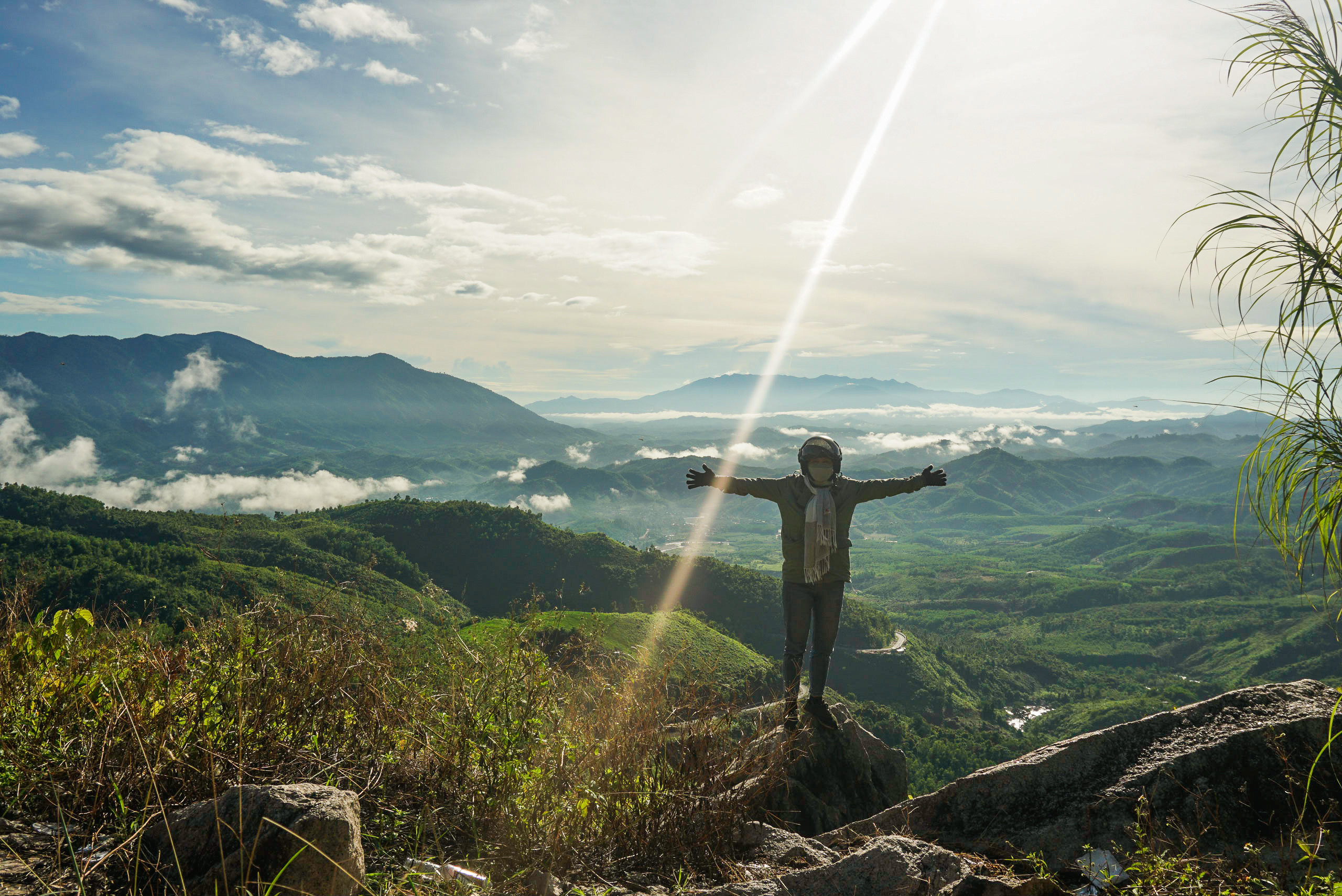 Suốt những chặng đường, cô Trang ngồi đằng sau bờ vai to lớn vững chãi của con trai, vui vẻ xuýt xoa khi nhìn thấy cảnh đẹp và kể cho con nghe "ngày xưa mẹ từng nghe nói ở đây thế này thế kia, đến giờ mới được trải nghiệm..."