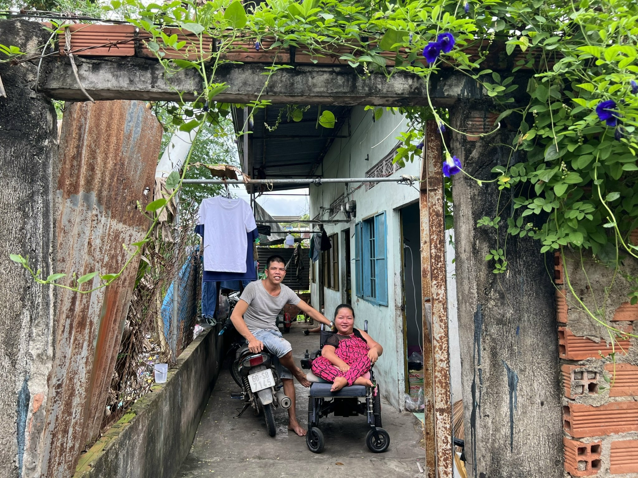 Gần trưa, Ngọc Diễm, 33 tuổi, ngồi trên xe lăn gọt rổ dưa leo vừa được hàng xóm cho để nấu canh. Trước đó, chồng cô, anh Minh Trí, 30 tuổi, đã đi chợ mua ít thịt về kho mặn. Trong khi chờ vợ sơ chế dưa, Trí rửa chén, vo gạo cắm cơm. Chốc chốc, anh xúc một muỗng nhỏ nước kho thịt chạy lại chỗ vợ đang ngồi đưa cô nếm thử.