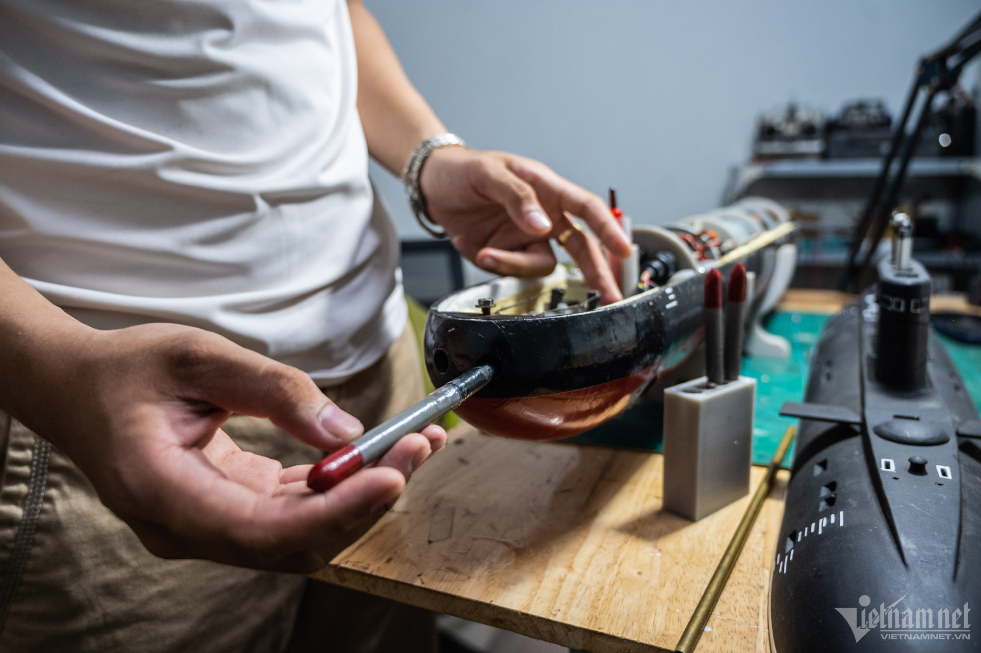 Phan Trần Phú (quận 6, TP. HCM) vừa học đại học vừa tự nghiên cứu, chế tạo thành công nhiều mô hình máy bay, tàu ngầm điều khiển từ xa giống với thực tế. Đặc biệt, mới đây chàng trai 23 tuổi đã cho ra đời thành công một mô hình tàu ngầm Kilo có thể phóng "ngư lôi, tên lửa" sau 2 năm dành thời gian tự mày mò.