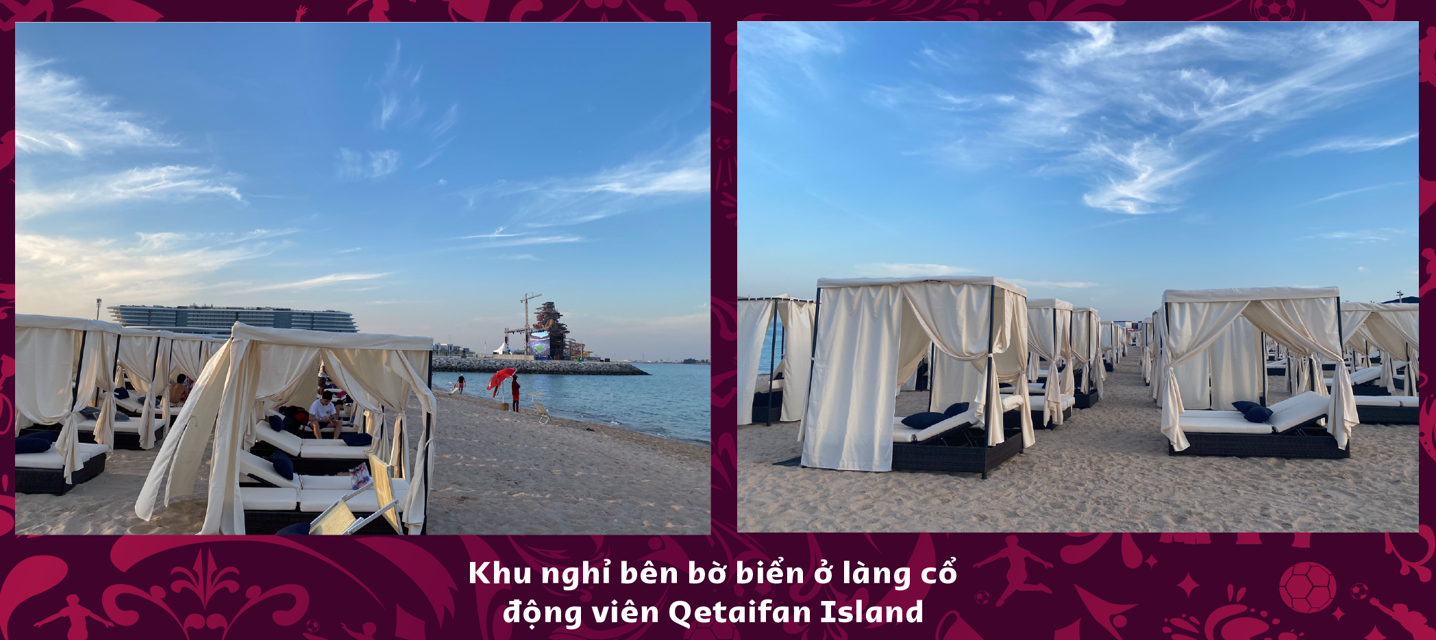 Ba ngày tiếp theo, chàng trai Việt chuyển sang khu làng cổ động viên khác ở Qetaifan Island. Căn phòng ở đây tuy giá cao, 207 USD/đêm (hơn 5,1 triệu đồng) nhưng thực chất chỉ là những chiếc lều vải nhỏ được dựng tạm bợ để phục vụ mùa World Cup.