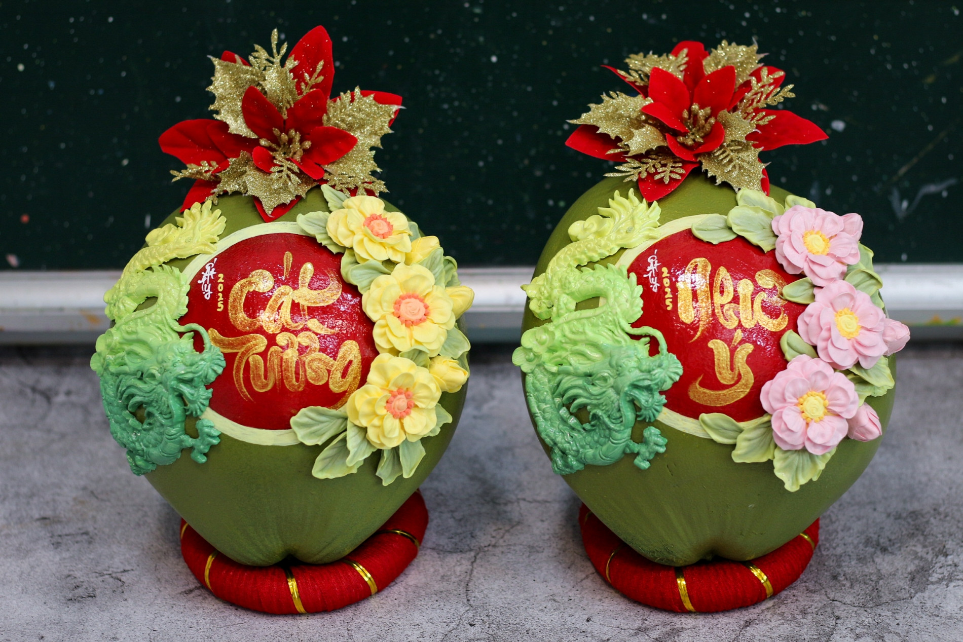 Tuy nhiên, dừa trang trí thường được chưng qua Tết, tận dụng hết vẻ đẹp và không sử dụng để uống nước bên trong”, Hiền chia sẻ.