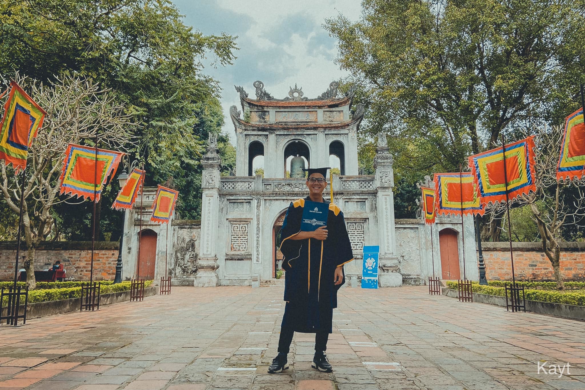 Chàng sinh viên tới thăm và chụp ảnh tại Quốc Tử Giám, Hà Nội