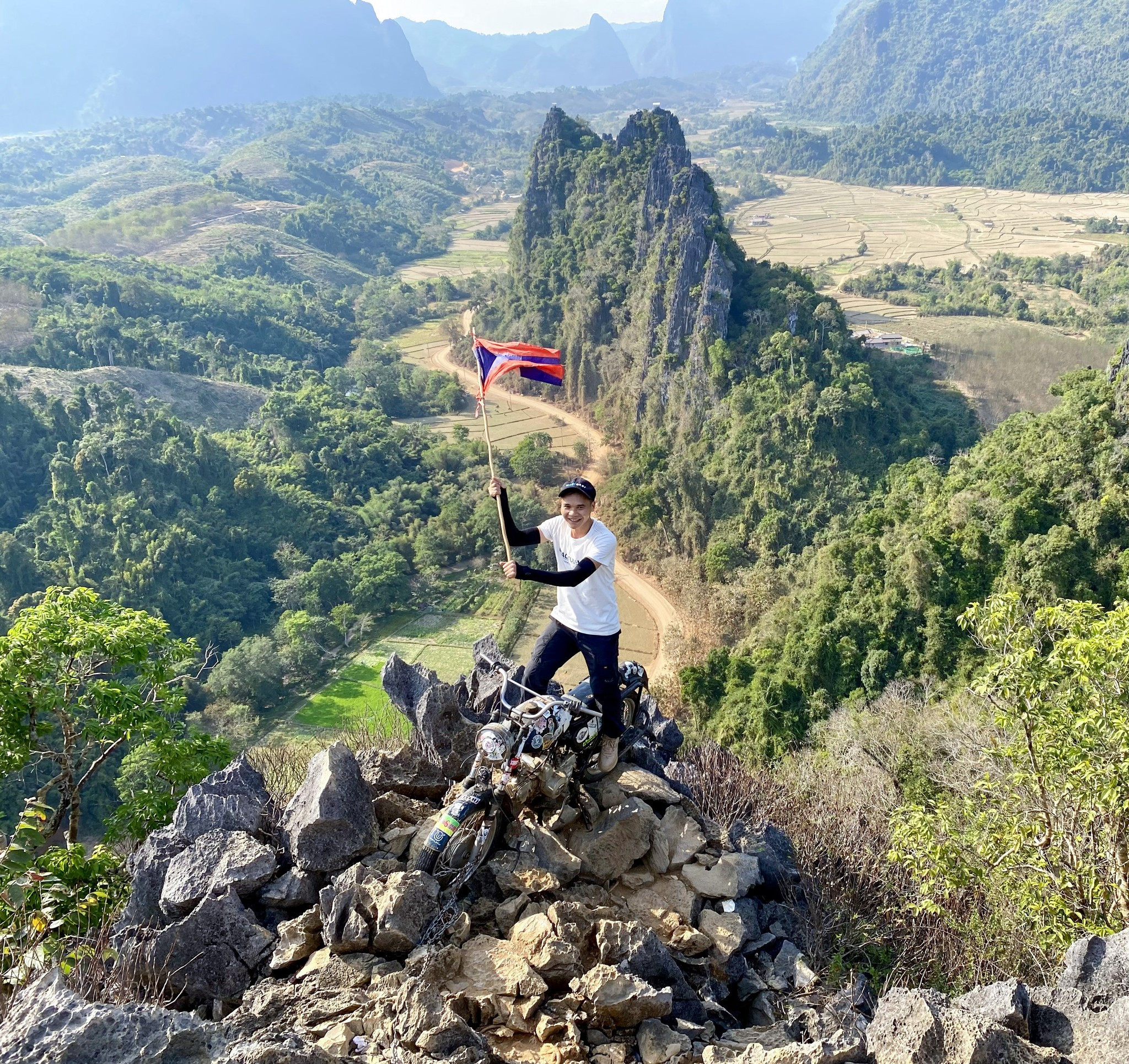 Anh Quang Cầu (biệt danh là Wabi Sabi, 35 tuổi, ở Hà Nội) vừa kết thúc hành trình độc hành khám phá đất nước Lào bằng xe máy trong 8 ngày, từ 3 – 11/2/2023. Trước đây, anh từng “phượt” xuyên Việt từ Hà Nội, đi hết các tỉnh miền Trung và miền Nam suốt một tháng trời.