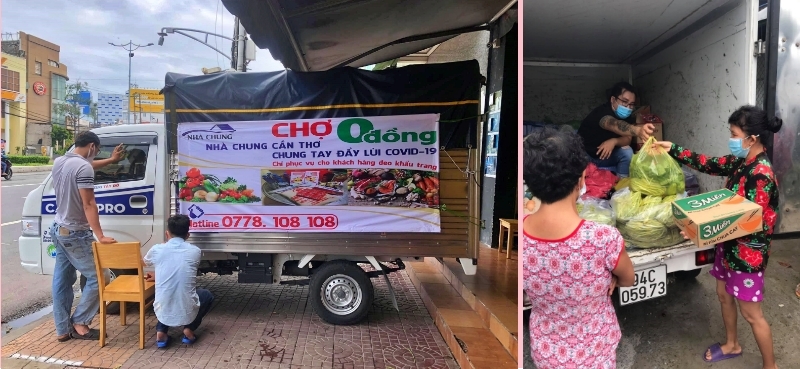 Bếp cơm thành lập được đôi ngày, Thắng lại quyết định mở thêm chợ 0 đồng di động để có thể hỗ trợ nhu yếu phẩm cho người dân tại khu phong tỏa, cách ly. Anh biến 2 chiếc xe tải thành những "khu chợ" 0 đồng di động chở rau củ, quả, sách vở, gạo, mì… đến cho người cần.