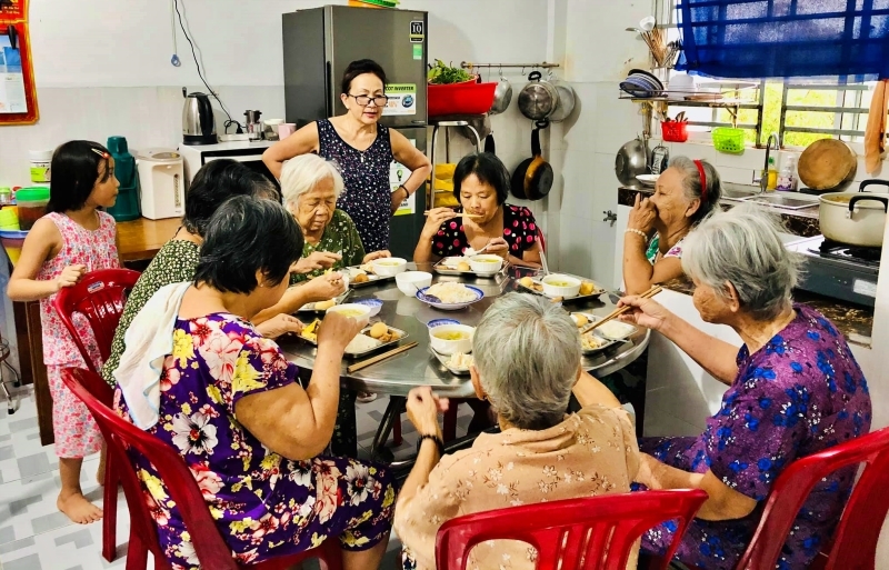 | Các cụ bà đang được Thắng chăm sóc, phụng dưỡng tại ngôi nhà chung. |