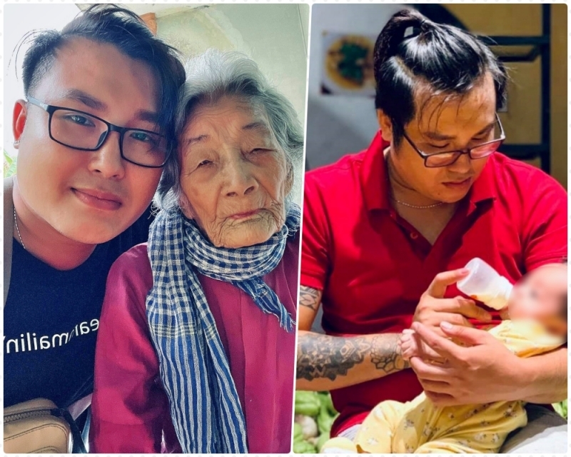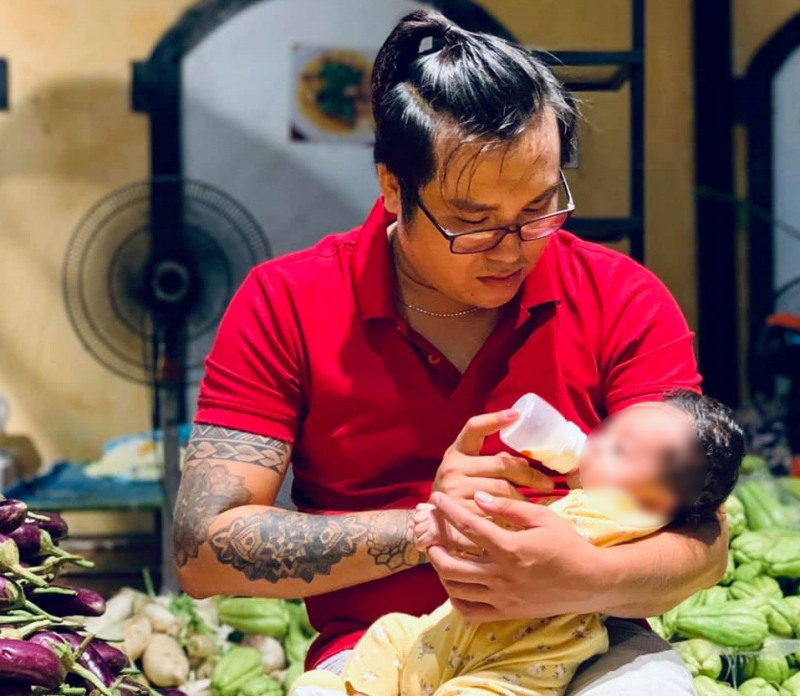 | Tranh thủ thời gian ít việc, Ngôn Đức Thắng chăm sóc các bé mà anh đang nhận làm cha đỡ đầu. |