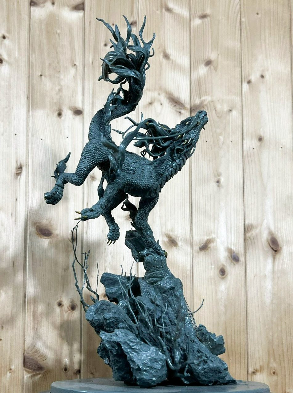 Hình tượng đầu rồng lửa và tiểu cảnh đá, lửa bên dưới đều được anh vẽ hoàn thiện hình ảnh trước. Sau khi hoàn thành, chàng trai chỉ việc dùng đất sét nặn theo. "Sử dụng thành thạo phần mềm để phác thảo hình ảnh 2D là một lợi thế lớn với công việc này, giúp mình dễ dàng sửa chữa hoặc thay đổi, sáng tạo ý tưởng", Âu nói.