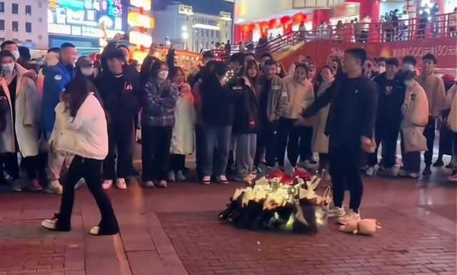 Bất chấp sự bối rối của bạn gái, anh hét lớn: "Hoa Hoa, em sẽ lấy anh chứ? Hoa Hoa, anh muốn cho em một mái ấm gia đình".