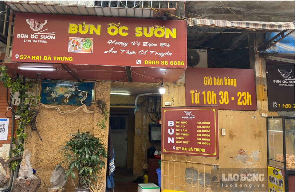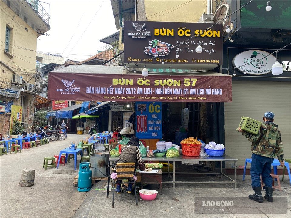 Đáng chú ý, phía biển trên quán bún ốc đề “Bún ốc sườn 57 bán hàng hết ngày 28.12 âm lịch – nghỉ đến ngày 6.1 âm lịch mở hàng”.