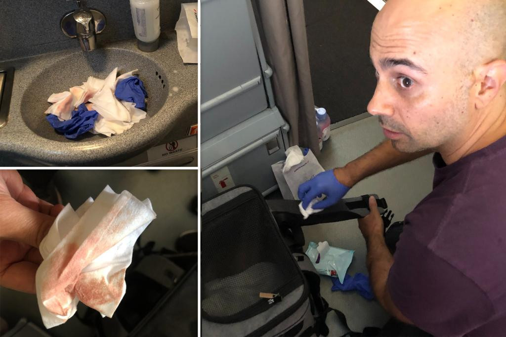 Theo những chia sẻ của các nhân chứng thì phi hành đoàn đã cố gắng hết sức để dọn dẹp đống lộn xộn bằng khăn giấy, tấm thấm hút và chất khử trùng.