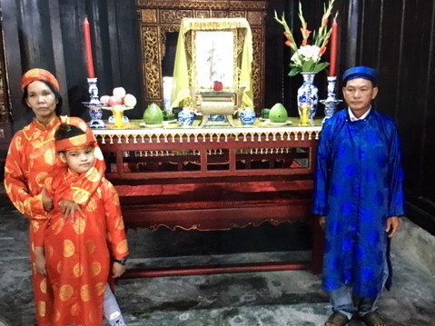 Sáng 24/3 trong niềm xúc động tột cùng, ông Nguyễn Phước Bảo Tài cùng vợ con đã đứng làm lễ trước bàn thờ bài vị vua Dục Đức, Thành Thái, Duy Tân nhân ngày lễ hiệp kỵ 3 vị vua yêu nước triều Nguyễn 16/2 âm lịch.