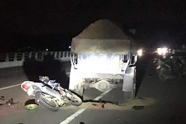 Chiếc xe công nông chở cát đang chạy lên giữa cầu thì một nam thanh niên chạy xe máy đâm vào phía sau, vụ tại nạn khiến 1 người tử vong.