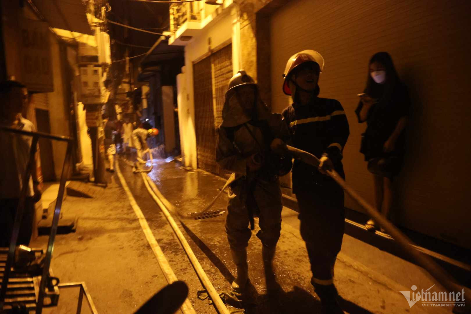 Tiếp cận hiện trường, PV VietNamNet ghi nhận lực lượng Cảnh sát PCCC&CNCH Công an TP Hà Nội, Trường Đại học PCCC... điều động gần 20 xe chuyên dụng tham gia chữa cháy. Đến 0h10 ngày 13/9, các lực lượng tiếp tục nỗ lực dập lửa, cứu nạn cứu hộ.