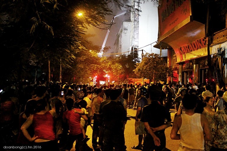 Cháy quán karaoke có gì vui mà xem đông thế?