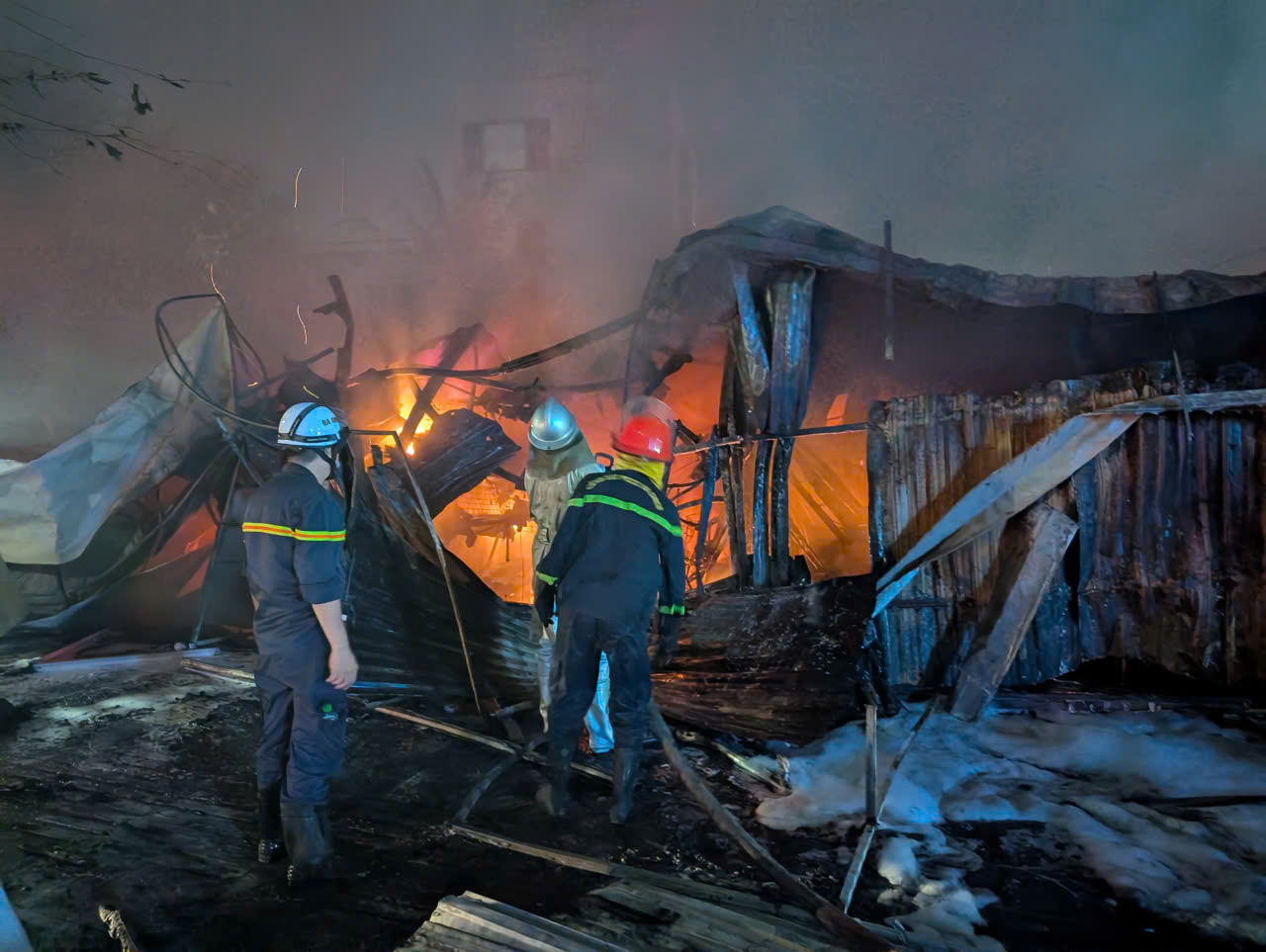 Tại hiện trường, ngọn lửa bùng lên từ dãy cửa hàng kinh doanh gồm quán ăn, tiệm sửa xe máy, cửa hàng vật liệu kim khí – điện nước. Các ki-ốt tạm bằng khung thép, mái tôn một tầng, chứa nhiều vật liệu dễ bén lửa như dầu, nhựa… khiến đám cháy lan nhanh, tạo cột khói đen bốc cao, bao trùm cả khu phố.