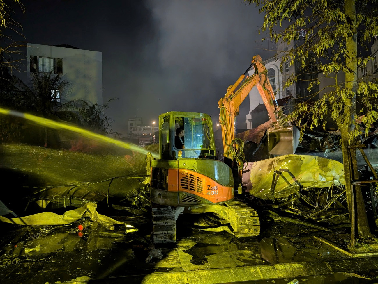 Trước tình hình nguy cấp, nhiều mũi tấn công đã được triển khai cùng lúc. Lực lượng cứu hỏa tận dụng nguồn nước tại chỗ, kết hợp xe téc hỗ trợ. Máy xúc được huy động phá dỡ các cấu kiện, mở đường cho lính cứu hỏa tiếp cận đám cháy.