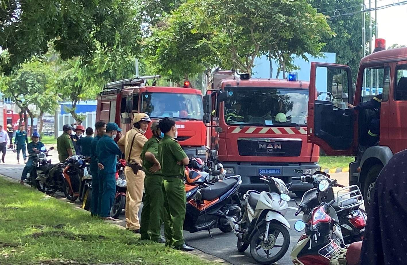 Nhận tin báo, Cảnh sát PCCC và cứu nạn, cứu hộ Công an TP Thủ Đức điều khoảng 10 xe cứu hỏa đến hiện trường dập lửa.