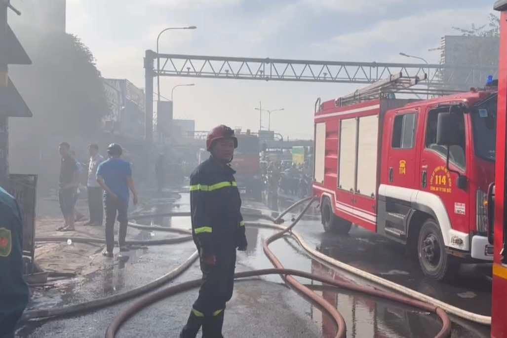 Gần 7h sáng nay (1/3), lực lượng chức năng TP Thủ Đức (TPHCM) vẫn đang tiếp cận hiện trường đám cháy lớn tại dãy nhà liền kề trên quốc lộ 13, phường Hiệp Bình Phước.