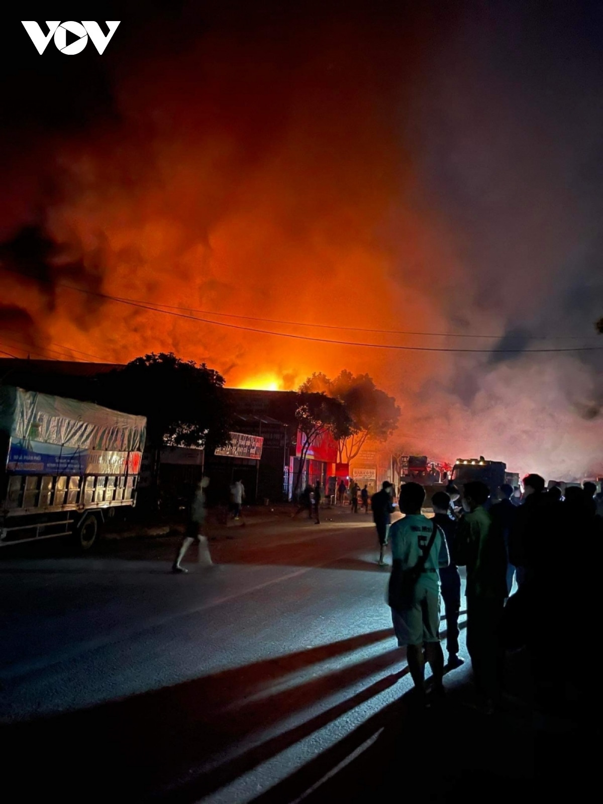 Ngọn lửa bùng phát dữ dội, tạo thành những cột khói đen bốc lên cao, thiêu rụi nhiều tài sản của cơ sở kinh doanh. Sau khi phát hiện cháy, người dân ngay lập tức huy động "4 tại chỗ" để dập lửa và báo cho lực lượng chức năng. Tuy nhiên, đám cháy lớn, nên không thể dập tắt.