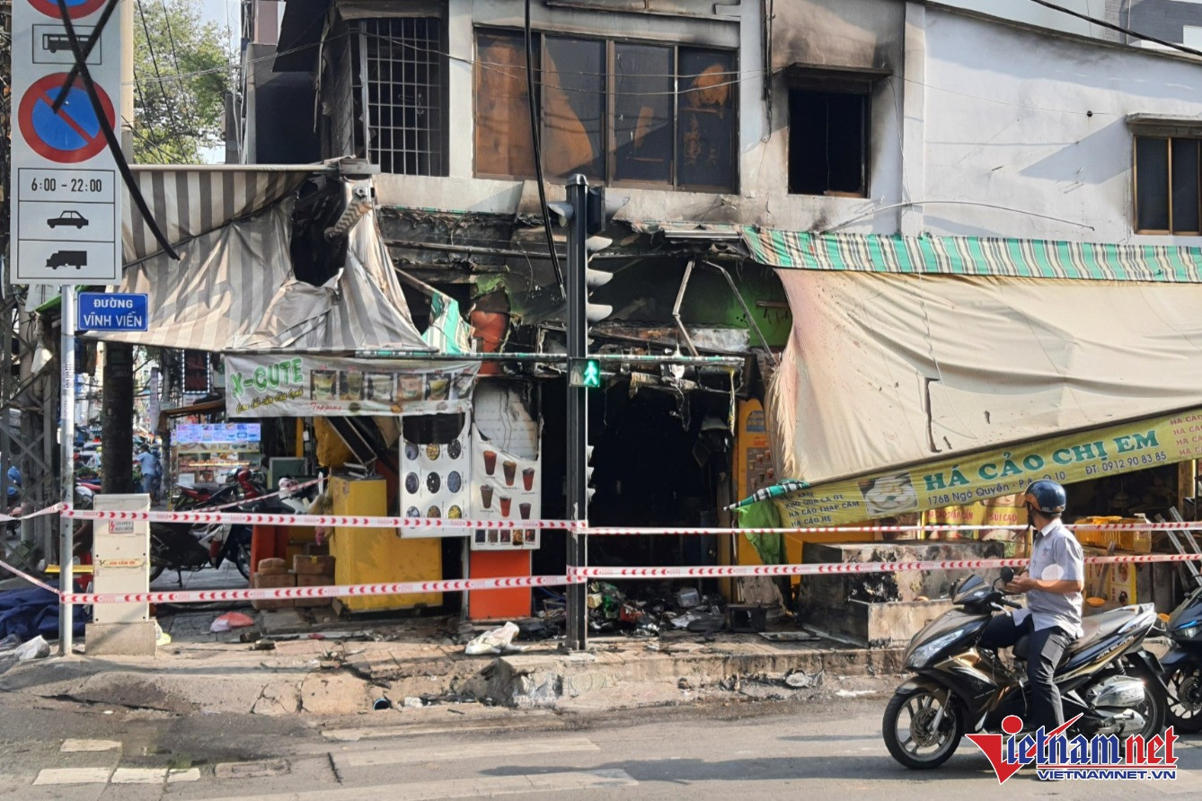 Sáng 7/4, lực lượng chức năng quận 10 (TP.HCM) vẫn đang phong tỏa, khám hiện hiện trường vụ hỏa hoạn tại quán trà sữa nằm ngay gốc Ngô Quyền- Vĩnh Viễn thuộc địa bàn phường 8.