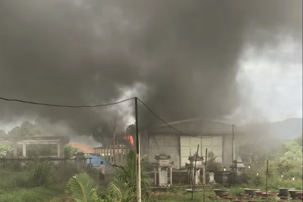 Cháy lớn tại kho lúa giống ở Quảng Nam, cột khói cao hàng chục mét