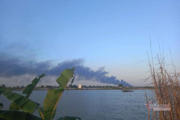 | Cột khói khổng lồ bốc lên từ đám cháy, nhìn từ phía huyện Cẩm Giàng |