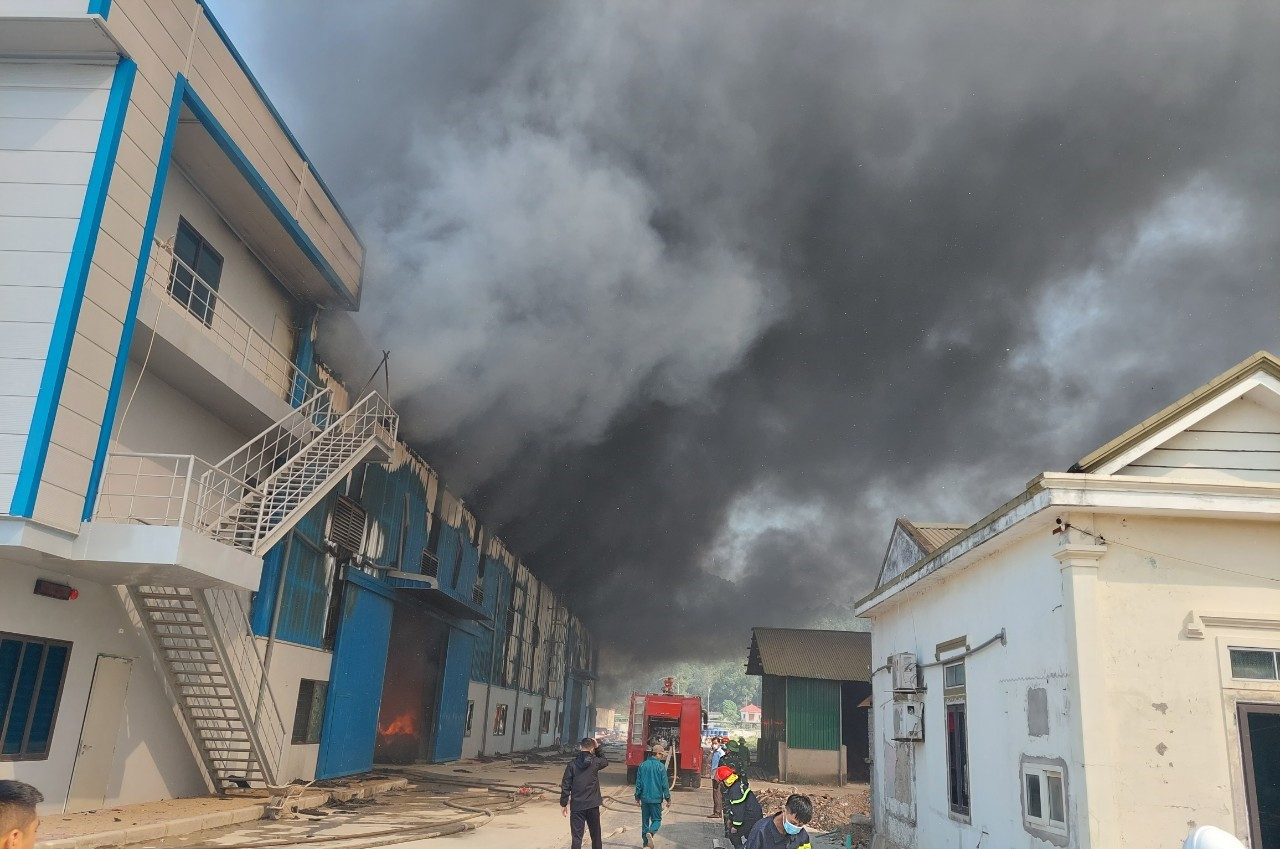 Trưa 18/11, Phó Chủ tịch UBND huyện Nghi Lộc (Nghệ An) Trần Thị Ánh Tuyết cho biết, đang xảy ra vụ cháy lớn tại một nhà máy ở khu công nghiệp Nam Cấm.