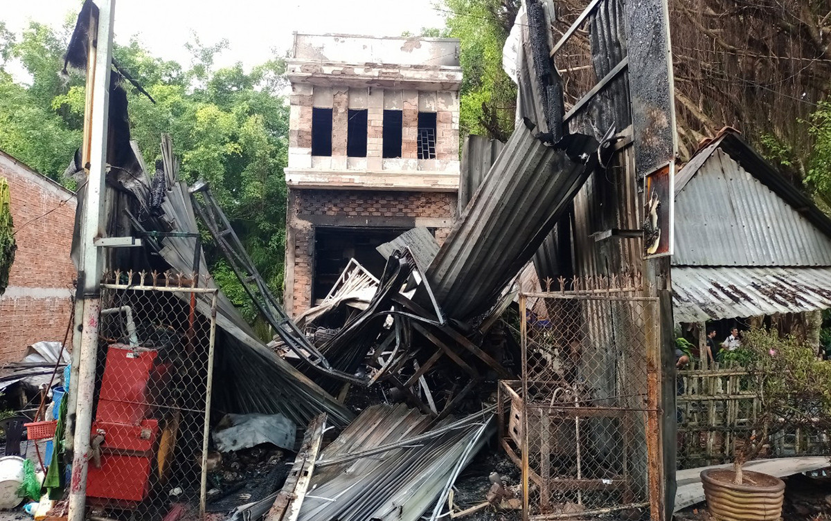 Khoảng 3h30 cùng ngày, người dân phát hiện nhà của anh Phan Văn Tới (39 tuổi, ngụ xã Tân An Thạnh, huyện Bình Tân) cháy dữ dội nên gọi điện báo cảnh sát.