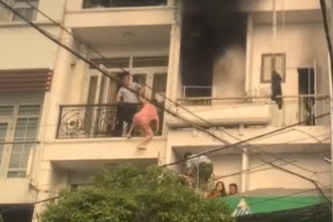 Phát hiện 2 người mắc kẹt trong căn nhà 3 tầng đang cháy ở trung tâm TPHCM, lực lượng PCCC và CNCH đã tìm cách tiếp cận, hướng dẫn các nạn nhân thoát ra ngoài an toàn.