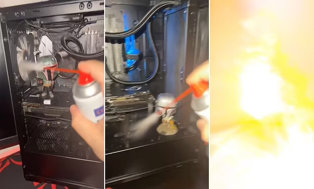 Khoảnh khắc lửa bùng lên thiêu rụi căn phòng do thanh niên vệ sinh máy tính