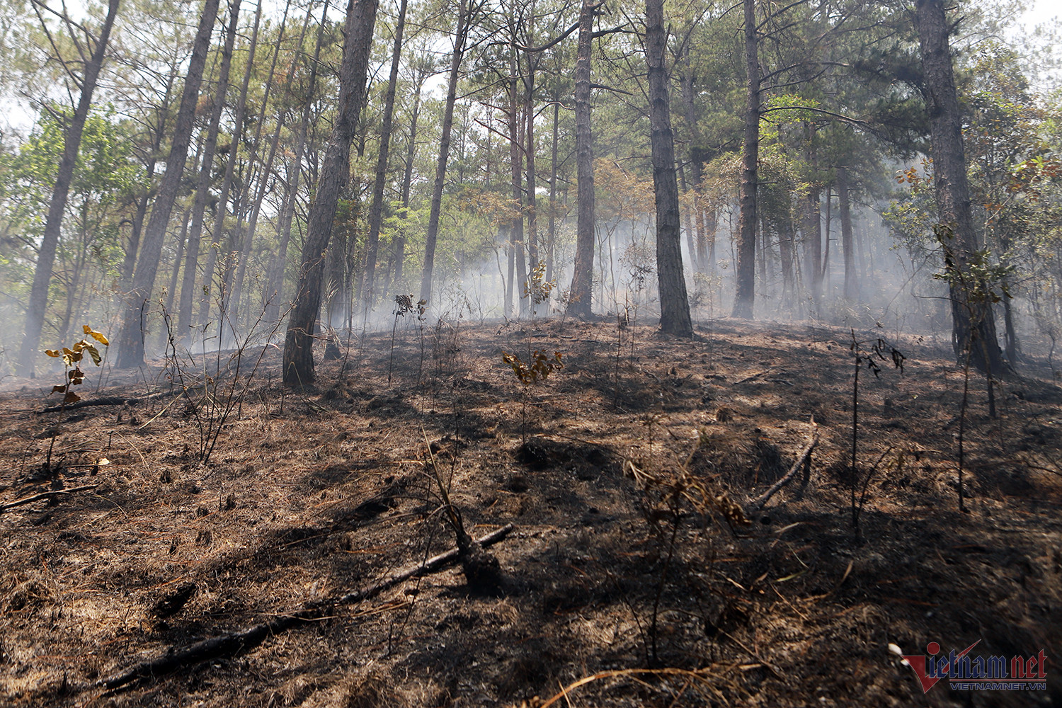 Ngày 8/4, nhiều khu vực rừng ở TP Đà Lạt bị cháy được khống chế, nhưng lửa vẫn âm ỉ. Hàng chục người vẫn túc trực tại hiện trường để đề phòng lửa bùng phát trở lại.