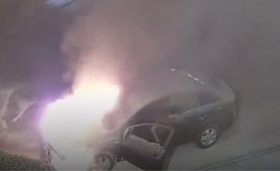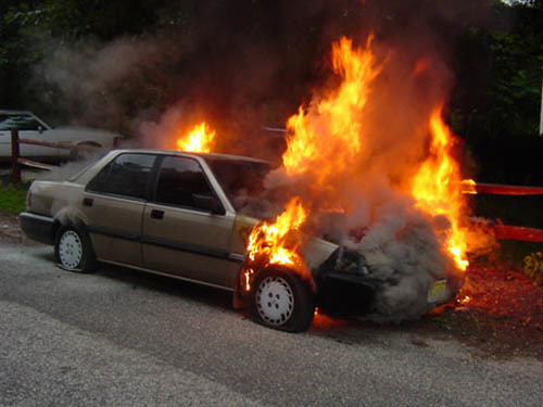 Chiếc ô tô bốc cháy dữ dội trong khi tài xế say rượu ngủ quên bên trong. Những người qua đường đã phải dùng bình cứu hỏa đập vỡ cửa kính ô tô để đánh thức tài xế.