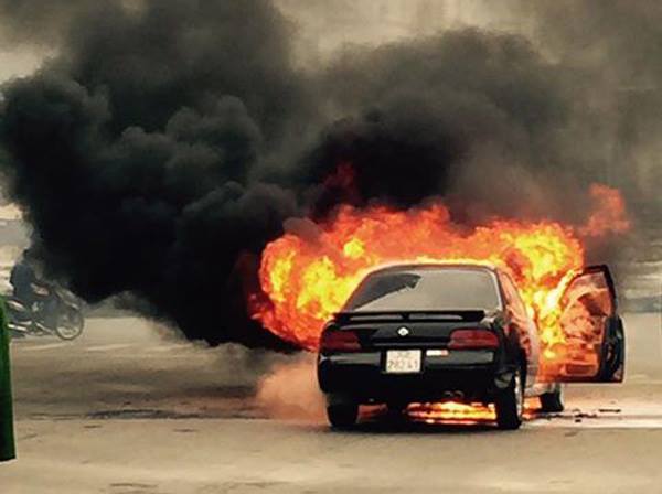 Ô tô bốc cháy đùng đùng vì trời quá nóng