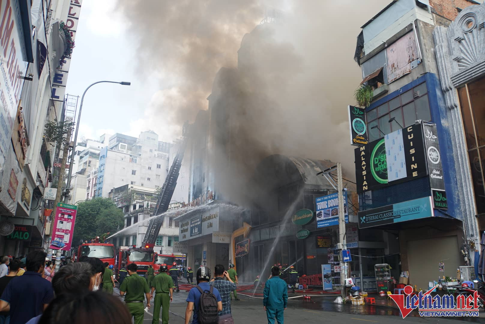 Lực lượng cảnh sát PCCC và CNCH TP.HCM có mặt lên phương án tiếp cận đám cháy và dập lửa.Tuyến đường Thủ Khoa Huân bị phong tỏa hoàn toàn.