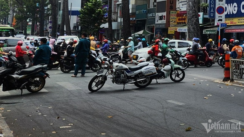Một đoạn đường Nguyễn Tri Phương được phong tỏa khiến giao thông bị ùn ứ.