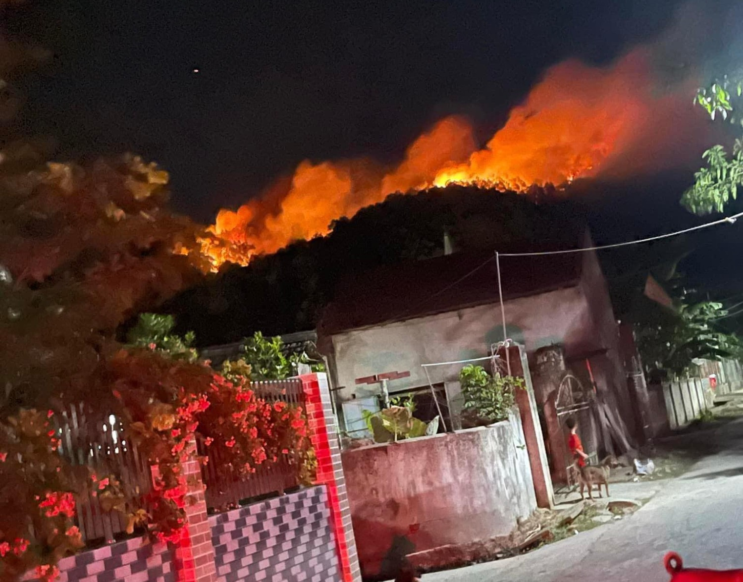Khoảng 21h tối 12/7, tại khu vực núi Bàu, xã Thượng Tân Lộc (huyện Nam Đàn, tỉnh Nghệ An), ngọn lửa bùng phát dữ dội, uy hiếp nhà dân dưới chân núi.