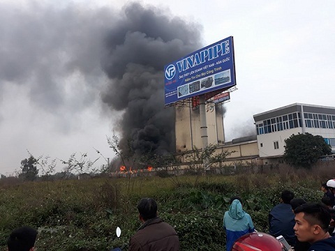 Vụ hoả hoạn với những cột khói hàng chục mét, thiêu rụi một phần nhà máy cám Thiên Tôn (Hải Dương).