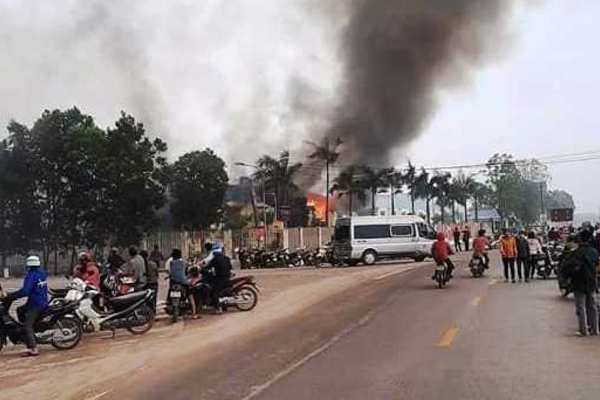 Đám cháy lớn bùng phát tại xưởng may công nghiệp của Công ty TNHH  IVORY (xã Thọ Vực, huyện Triệu Sơn, Thanh Hóa) khiến toàn bộ nhà xưởng bị thiêu rụi.