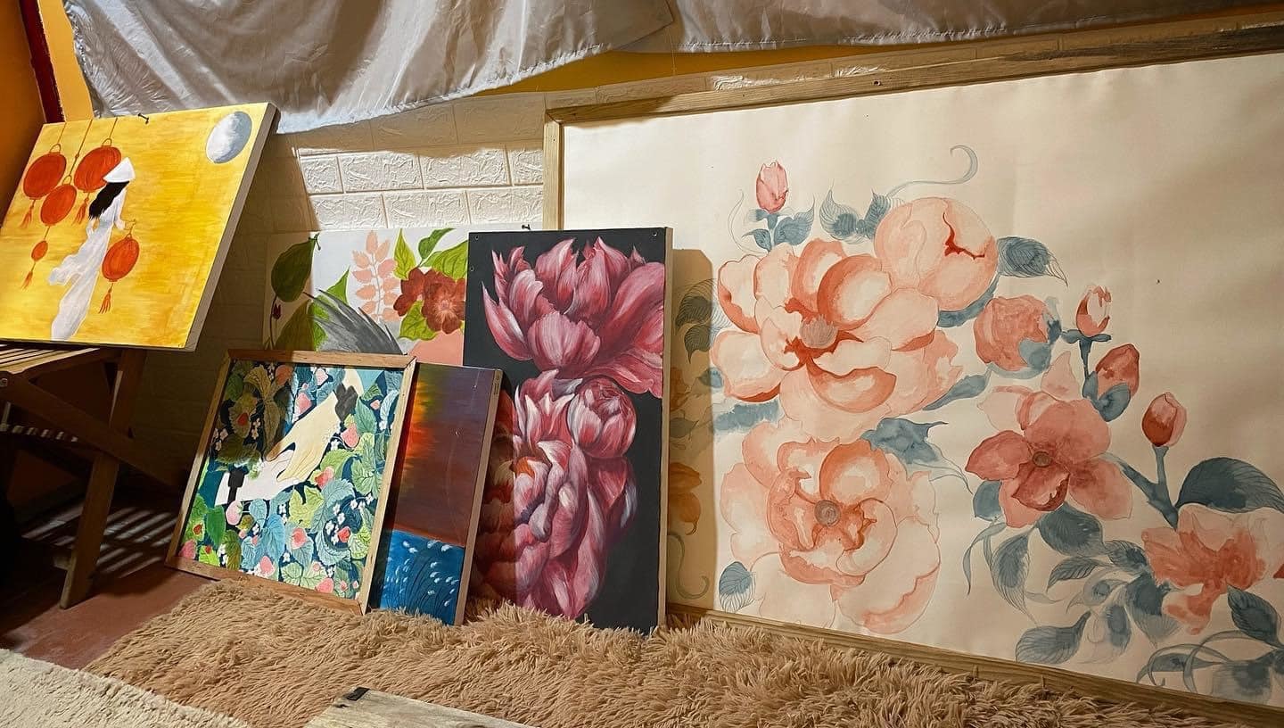 Vốn có năng khiếu hội họa, thời gian rảnh, Khánh Huyền vẽ tranh. Những vị khách tới homestay rất thích tranh của cô, họ ngỏ ý hỏi mua, giới thiệu gần xa. Từ đó, Huyền và bạn trai có thêm các đơn đặt hàng trang trí, thi công quán cà phê, homestay.