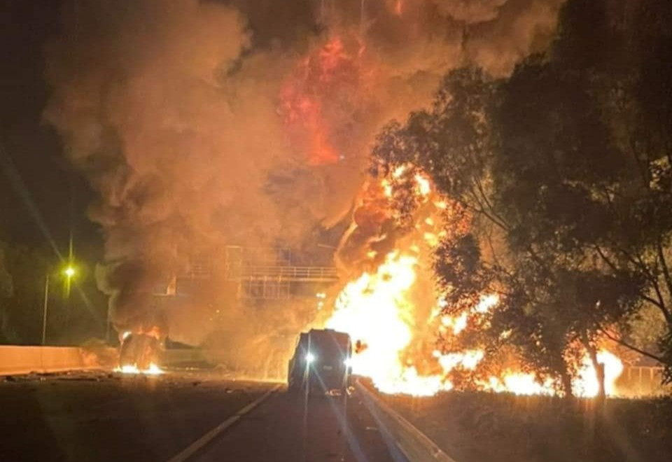 Sau đó, xe bồn bốc cháy dữ dội, ngọn lửa lan sang hành lang cây xanh bên cao tốc. Vụ việc khiến các phương tiện di chuyển theo hướng Hà Nội - Hải Phòng bị ùn tắc.