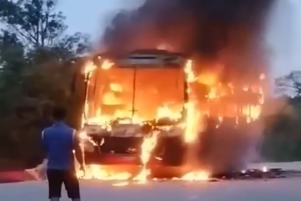 Xe khách Văn Minh chở theo nhiều người đang lưu thông trên cao tốc Mai Sơn- Cao Bồ bất ngờ bốc cháy. Tài xế và hành khách thoát khỏi hoả hoạn, bất lực nhìn ngọn lửa thiêu rụi phương tiện.