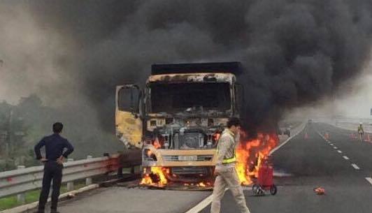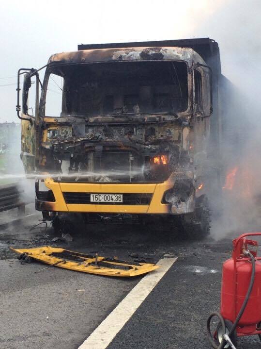 “Ngay sau đó, chúng tôi cũng có mặt phân luồng giao thông và dập lửa. Do trên xe tải có vật liệu dễ cháy nên ngọn lửa bốc lớn, cháy lan ra bao trùm toàn bộ xe", lãnh đạo Ban quản lý cao tốc Hà Nội- Hải Phòng nói.