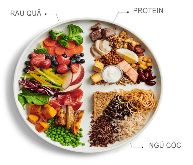 Theo Đại học Harvard, đây là hướng dẫn để tạo ra những bữa ăn cân bằng, lành mạnh. Theo đó, bạn nên ưu tiên rau và trái cây, chiếm một nửa bữa ăn. Phần còn lại là ngũ cốc nguyên hạt và protein lành mạnh. Cụ thể như sau: